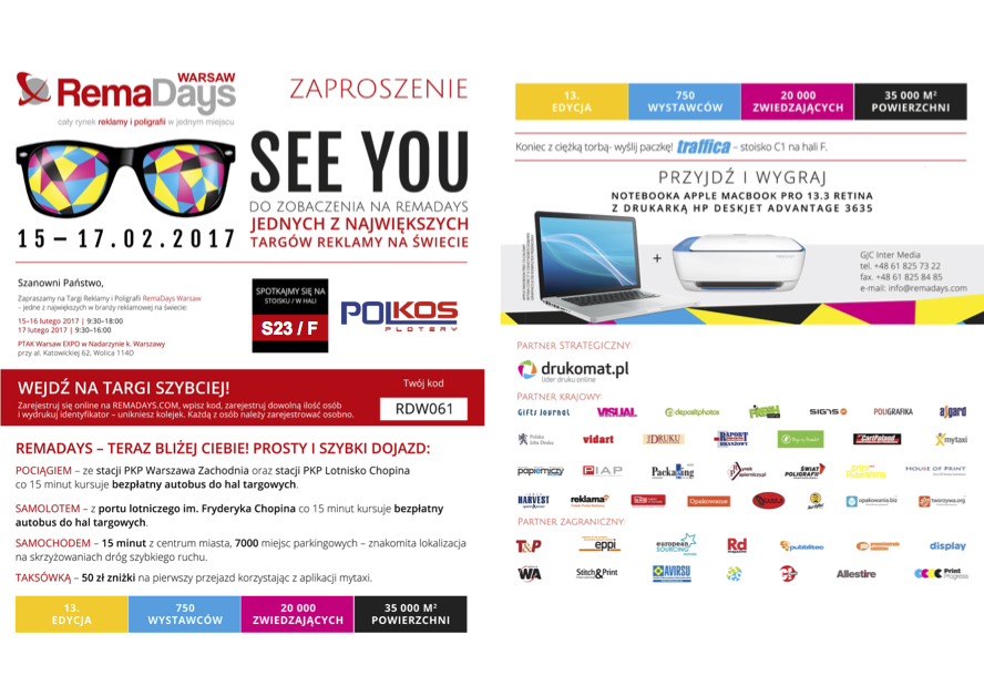 Zapraszamy do Nadarzyna w dniach 15 - 17 lutego wszystkich zainteresowanych najnowszymi rozwiązaniami dla firm reklamowych.