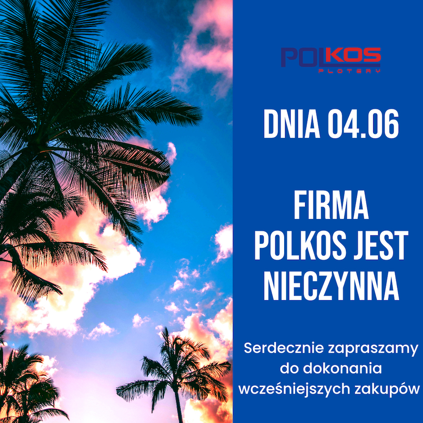Szanowni klienci, chcielibyśmy poinformować, że dnia 04.06 firma Polkos jest nieczynna. Serdecznie zapraszamy na wcześniejsze zaopatrzenie się.