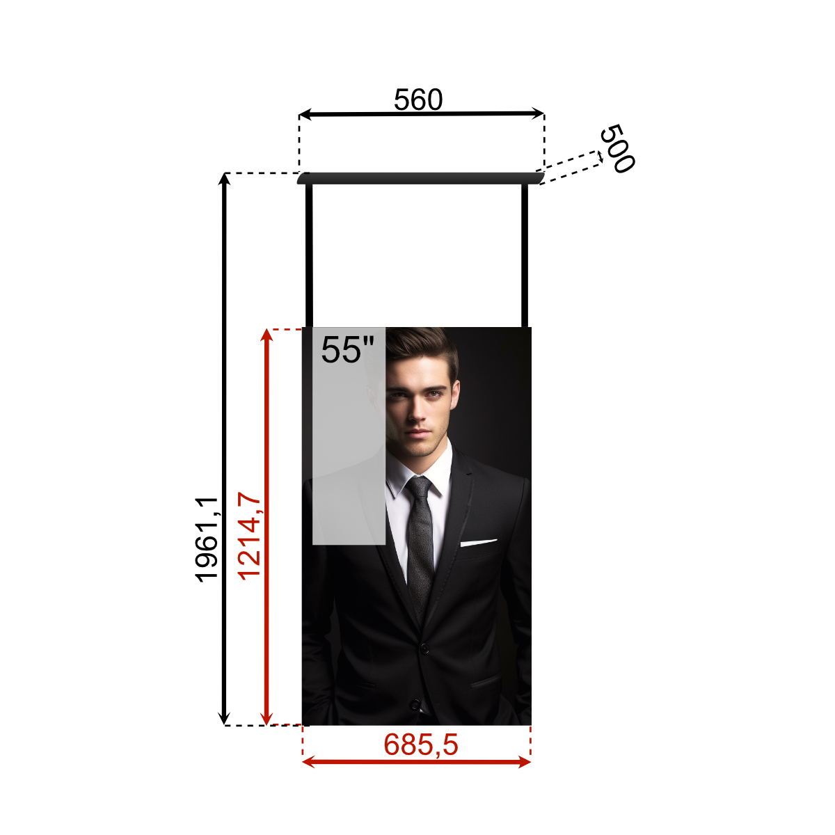 43", 49", 55"