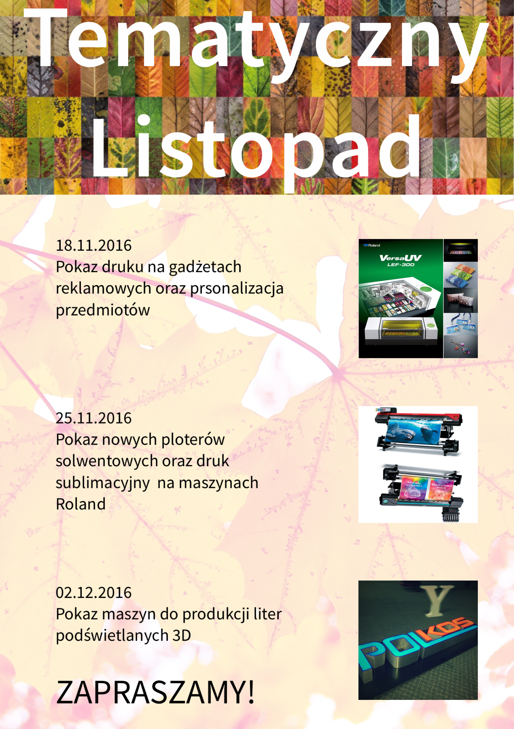 Zapraszamy do Nadarzyna w dniach 15 - 17 lutego wszystkich zainteresowanych najnowszymi rozwiązaniami dla firm reklamowych.